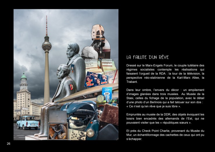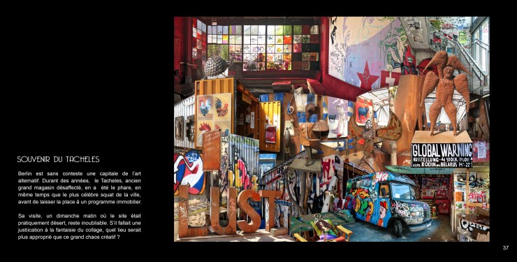 Sous sa forme numérique, la technique du photomontage a paru particulièrement appropriée pour parler de Berlin. C’est déjà le collage, mais avec des ciseaux et de la colle, qui a été la forme d’expression privilégiée de deux artistes allemands emblématiques de la république de Weimar, liés au mouvement dada : dans le registre de l’image de propagande politique, John Heartfield (de son vrai nom Helmut Herzfeld), célèbre pour ses compositions antinazies, et dans un registre féministe, surréaliste et poétique, Hannah Höch, qui a dû enfouir ses œuvres dans son jardin de la banlieue berlinoise pour échapper à la persécution frappant les grandes figures de l‘«Art dégénéré ».
