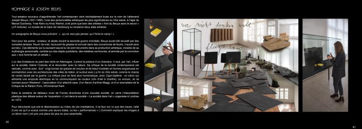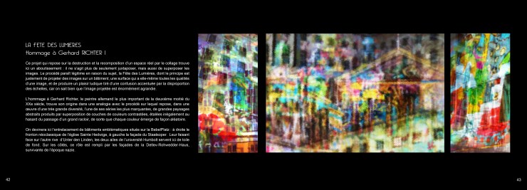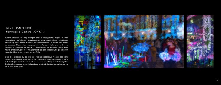 La référence à la peinture est par ailleurs une constante : l’une des premières images réalisées, « Une mémoire traumatique » est née en pensant aux oeuvres suprématistes : des formes géométriques organisées en équilibres dynamiques, mais avec les couleurs de l’environnement réel. L’évocation de la Gemälde Galerie emprunte dans son organisation aux commandes des grands collectionneurs du XVIIIe siècle, et dans sa forme, aux tryptiques du Moyen Âge. Il était donc logique de conclure avec un hommage aux deux artistes allemands les plus importants de la période contemporaine, Joseph Beuys et Gerhard Richter.