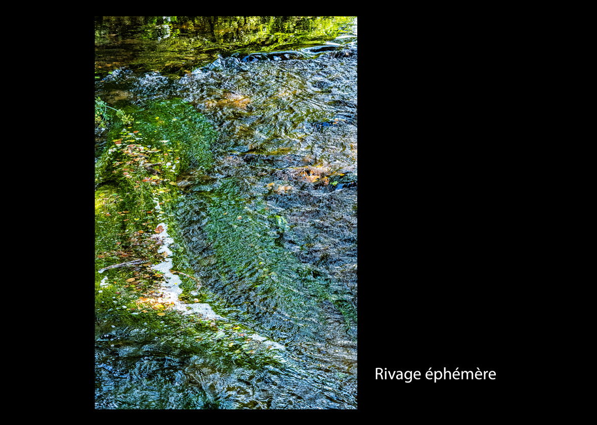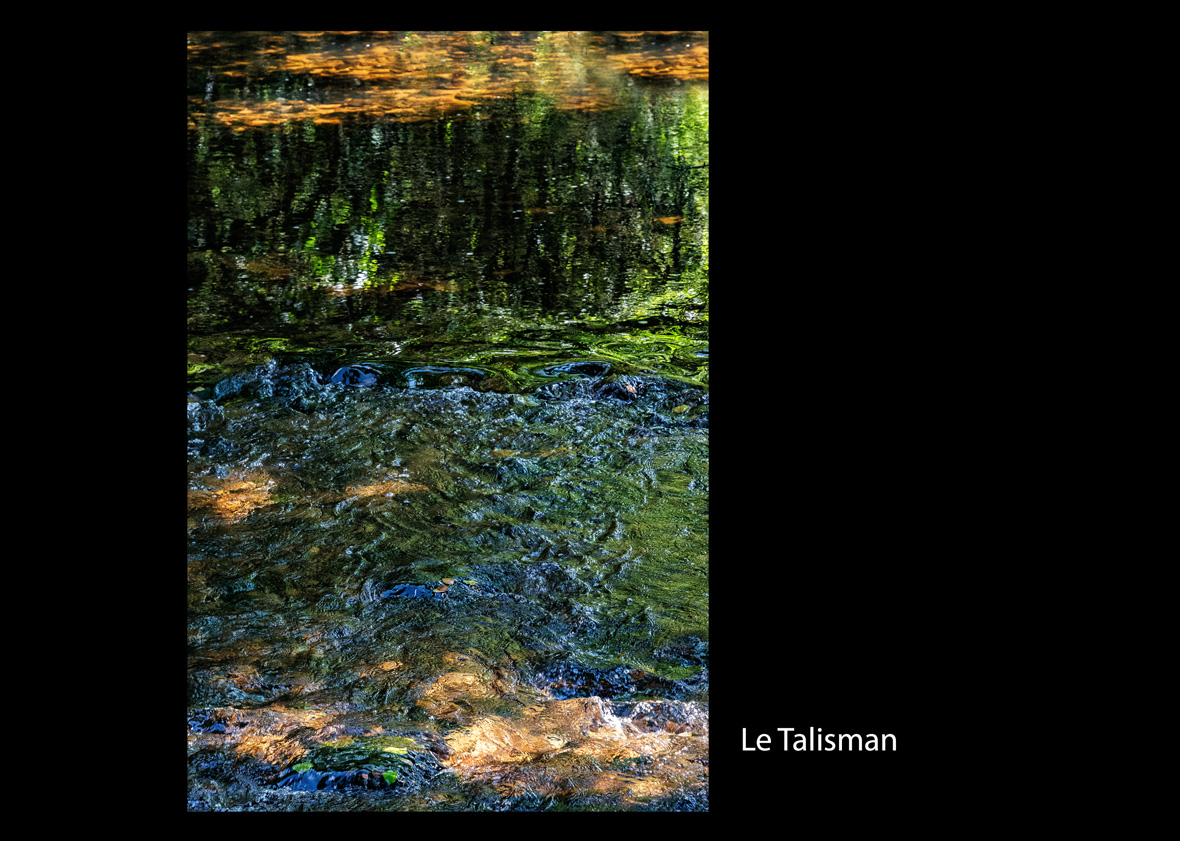 J’ai compris en logeant l’Aven pourquoi son vallon a tant inspiré les peintres, tant ses couleurs et les mouvements de ses eaux sont variés. En veillant à ce qu’aucun détail ne permette de se situer dans un cadre illusionniste, sans jamais m’éloigner de la réalité mais en faisant tout pour dissuader le spectateur de se référer à un endroit précis, j’ai travaillé les couleurs et ciselé les formes pour créer ce qui est mon « Talisman » personnel. Dans des mouvements dynamiques et si possible, contradictoires, rien que des formes et des couleurs.
